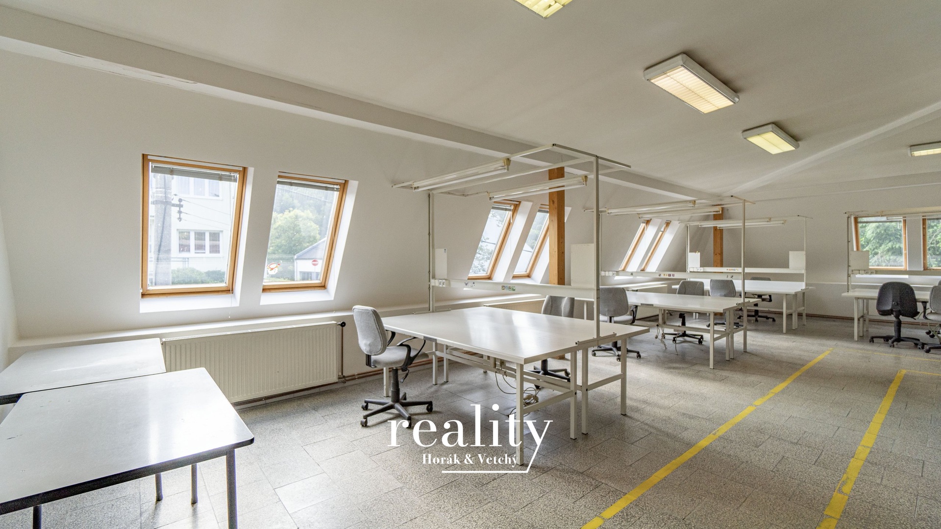 druhém patře, k pronájmu místnosti 3,4,5 – 45 m2 – ostatní jsou společné prostory.