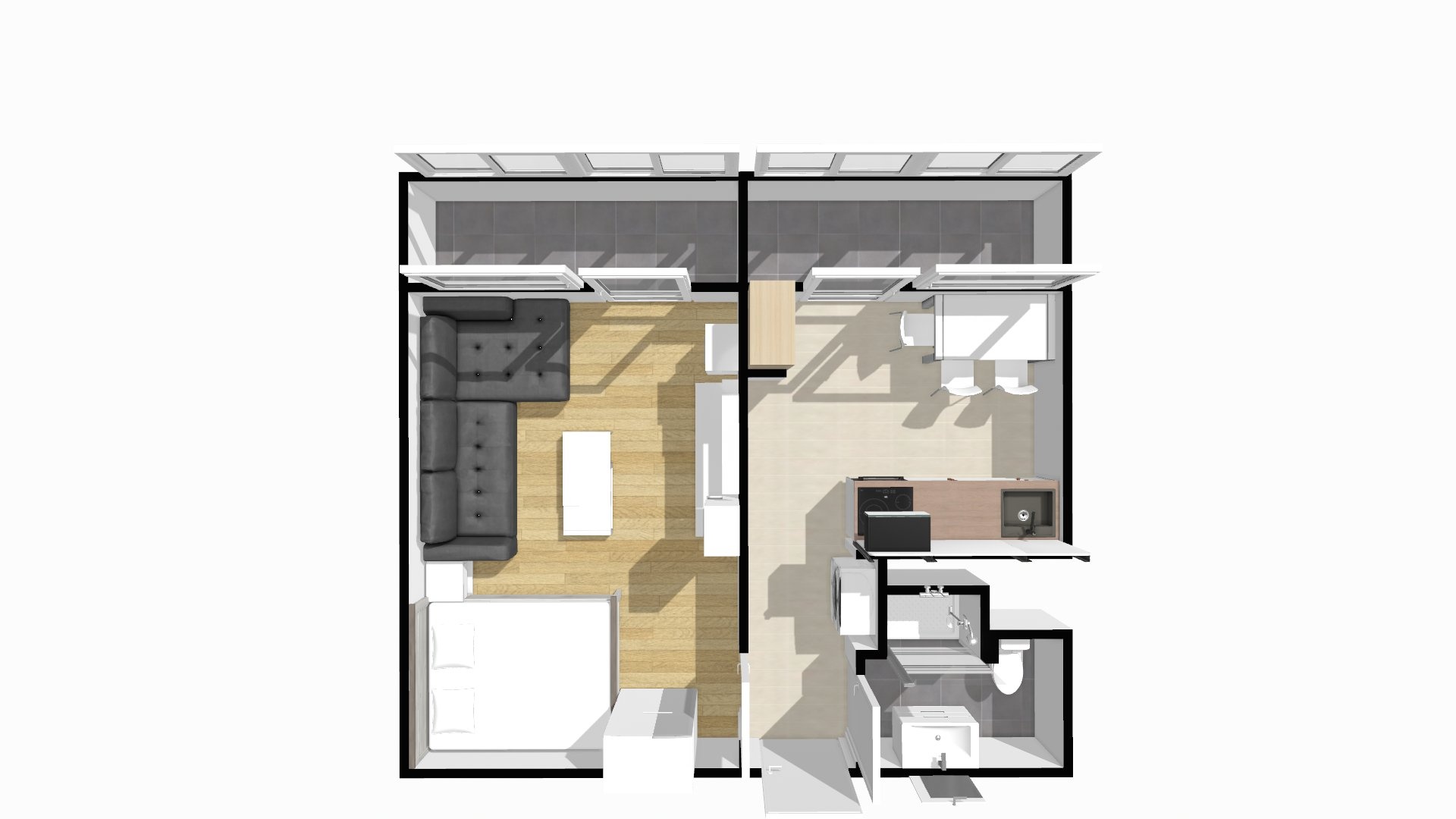 • Dispozice: 1+1, celkem 31,5 m².